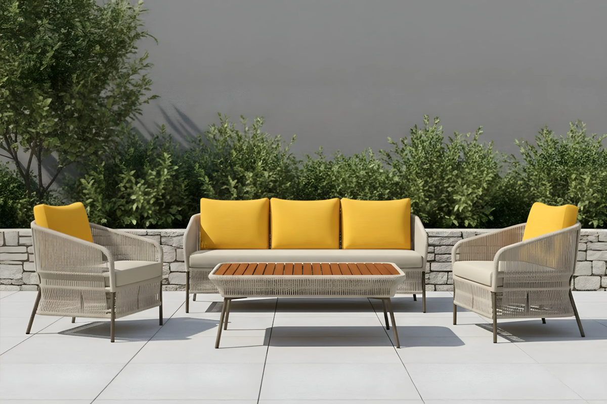 Vibrant, versatile, and crafted for contemporary outdoor living, this striking sofa set redefines open-air elegance.