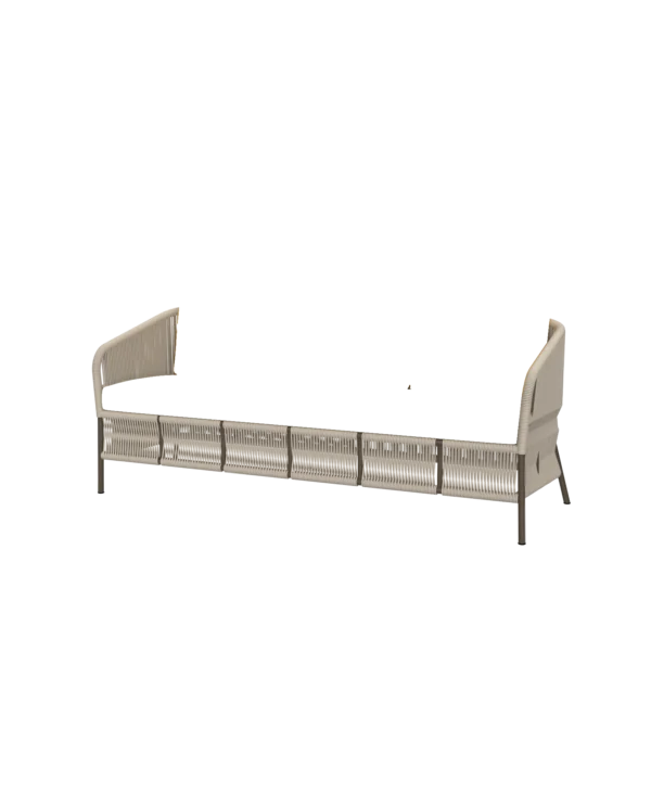 Reflecting nature's serene calm, the Stone Horizon Collection features a range of pieces with a lightweight aluminium frame with handwoven UV-resistant rope for unmatched durability. The reclined profiles and plush quick-dry cushions deliver grounded elegance and tranquil comfort perfect for balconies, patios, and garden retreats.